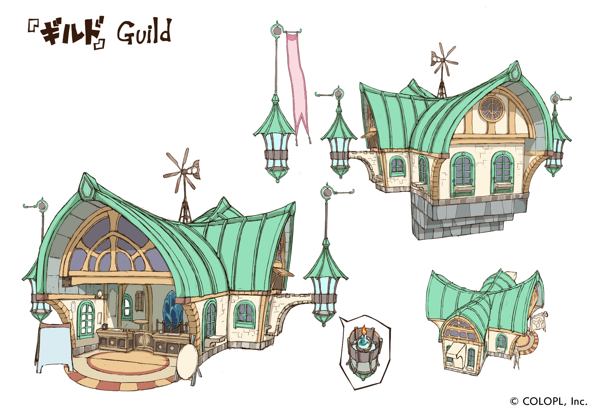 In the area where the whale’s stomach would be located, you can see an expansive living space. As you progress in the game, several facilities will appear at the stone area, and the floating island will get livelier. Facilities: Guild