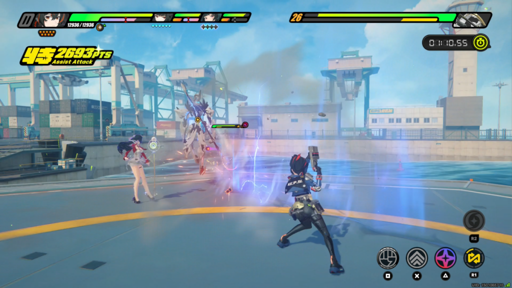 Evelyn’s presence instantly brings out a new side to Astra. With both Agents present, Astra can be called on to activate Idyllic Cadenza, and almost immediately, a Quick Assist will pop up which not only switches to Evelyn (or another party member) but it also buffs them. Astra will also stick around to indicate that her song is active, and these buffs continue as long as she is there. She also can’t be damaged in this situation, although she can still be switched to if necessary.