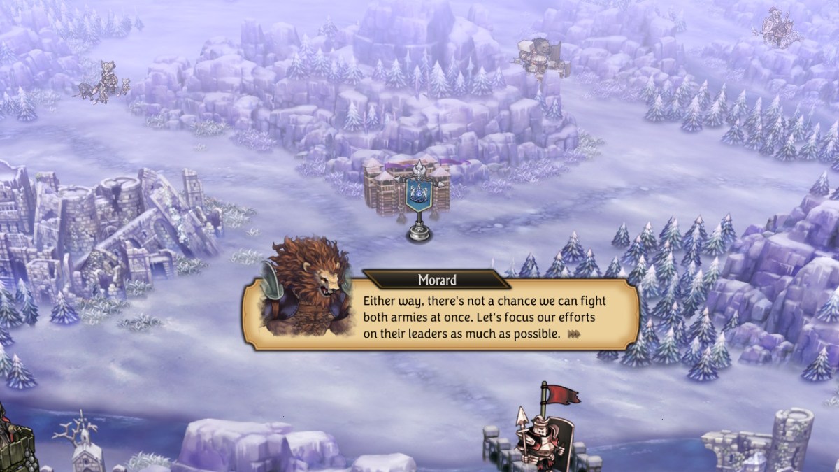 Okay, so we’re going with the middle option in the center of the map. You’ll be facing Werebears and Werewolves, and there will be Werefoxes and Wereowls too. You’ll be in the middle facing enemies on all sides. You need to reach and beat both Bertrand and Govil to recruit them in Unicorn Overlord. You also need to keep your own base from being captured.
