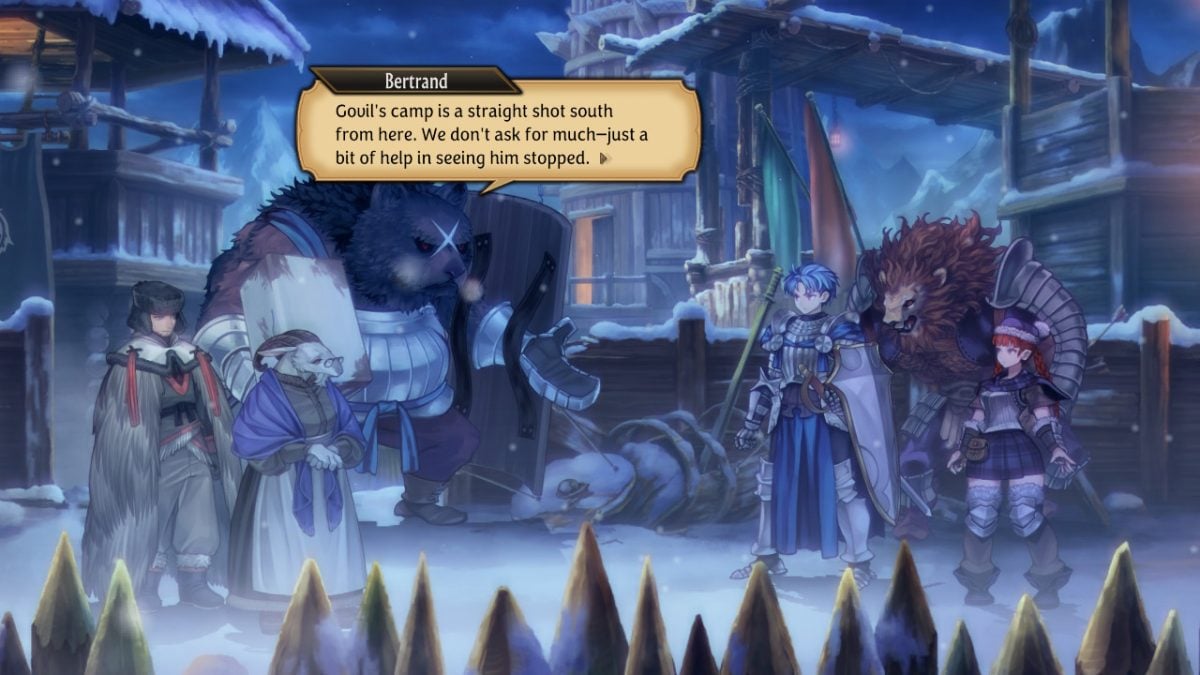 After talking with him, Alain will talk with Morard and Yunifi about the situation. You can side with Govil immediately, but you’ll also be directed to head to Bertrand’s northern fortress and hear the other side of the story.