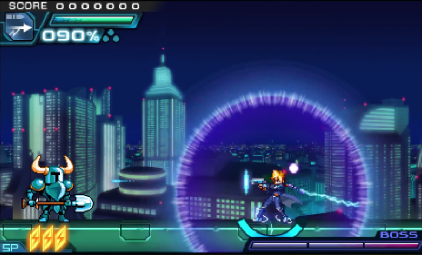 Yacht Club Games recently announced that they’re bringing a double pack for Azure Striker Gunvolt to North America, and they also shared a teaser for a Shovel Knight cameo. The Shovel Knight sprite was designed by Masaya Suzuki at Inti Creates, who has been working on various sprites since the original Breath of Fire series and also the Mega Man Zero sprite. In the latest collaboration, using the Shovel Knight amiibo will unlock a special boss fight hat lets you fight Shovel Knight in Azure Striker Gunvolt 2. Azure Striker Gunvolt 2 will release in Japan on August 25, North America in September 30, 2016 and later this year in Europe for Nintendo 3DS.