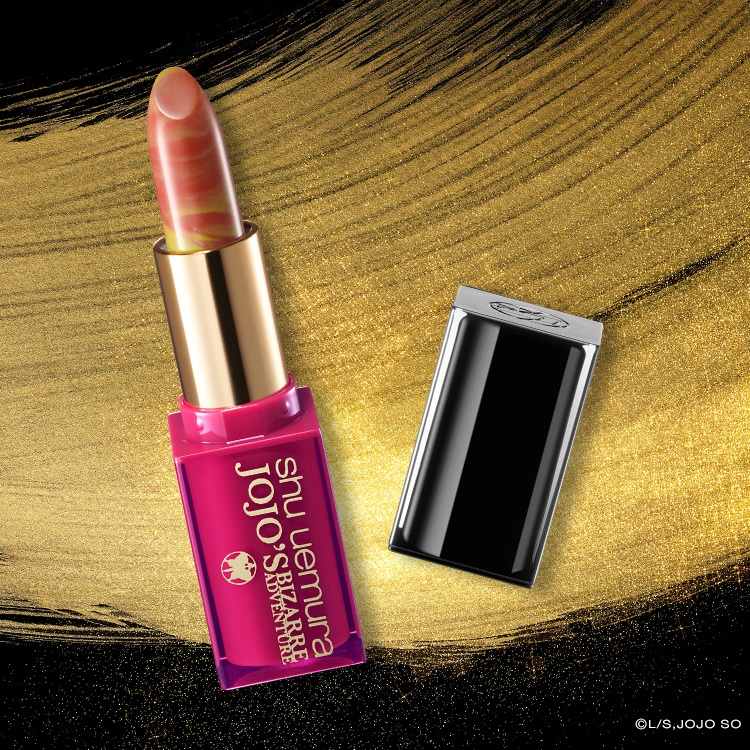 The Rouge Unlimited Bizarre Marble lipstick fuses pink and lime green. This is supposed to remind you of all the ups and downs of Jolyne’s messy adventure. However, once you actually apply it, it has a light shade of pink that borders on nude. Swatches of all the lipstick and eyeshadow are available via the special Shu Uemura x JoJo’s Bizarre Adventure: Stone Ocean page.