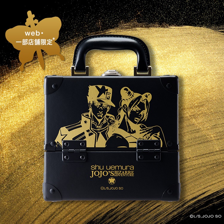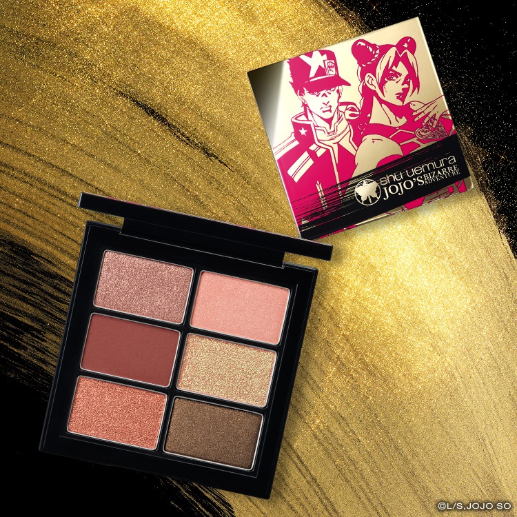 The JoJo’s Bizarre Adventure: Stone Ocean makeup items from Shu Uemura all feature packaging that draws on motifs and symbols from the show and manga. For example, the limited eyeshadow palette comes in a heart-shaped case with the butterfly tattoo that Jolyne has.