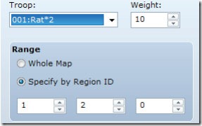 On this, there are only three things to pick from: 1. Troop. Here just select the troop you want to apply to the map. 2. Weight. This determines how common the encounter is in its areas. The higher the more common they will be. I left it on 10 for all the encounters except the Wisp encounters, which I wanted a bit rarer and set to 5. 3. Range. This determines where on the map this encounter will show up. On the two dungeon maps, we can just select Whole Map for all of them, but on the World Map we will need to select by Region ID. You can select up to 3 Region IDs per Encounter. If you need more Region IDs (like the Orcs*2 Encounter) just add it again and add the other Region IDs there.