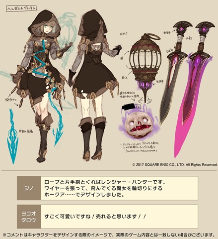 Gino: Pinocchio had a good upbringing with high morals, good at studies, and has a lot of love for family. He is the second Pinocchio. Strong and new game. I wonder how he ended up becoming new game. Yoko Taro: Very cute! I believe he’ll sell well!! Hansel & Gretel (CV: Maaya Uchida)