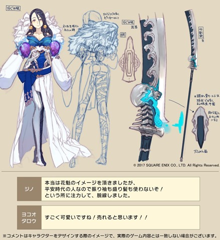 Gino: Donning a robe with dual-blades, we have a treasure hunter. Using a wire to cut down flying witches as Hawkey… er, that’s how she was designed. Yoko Taro: Very cute! I believe she’ll sell well!! Kaguya Hime (CV: Shizuka Ito)