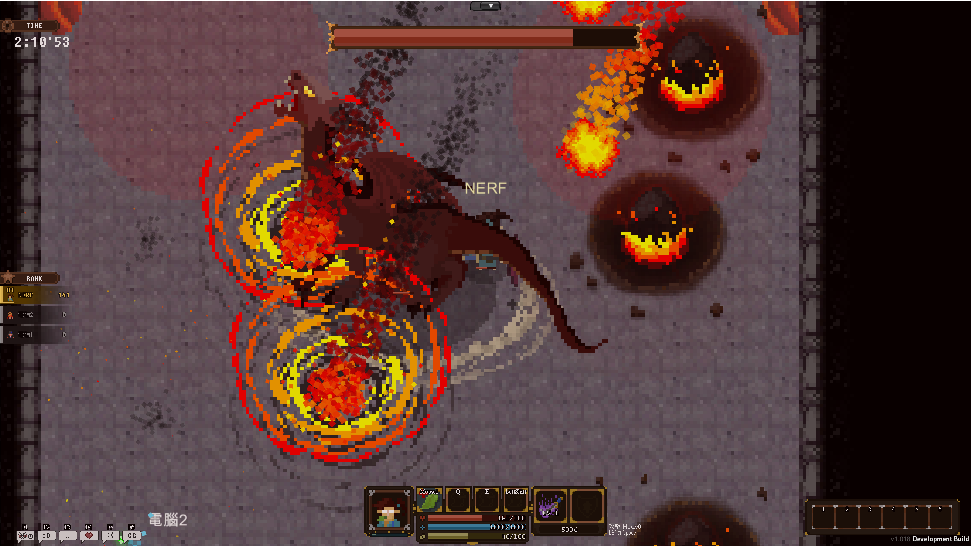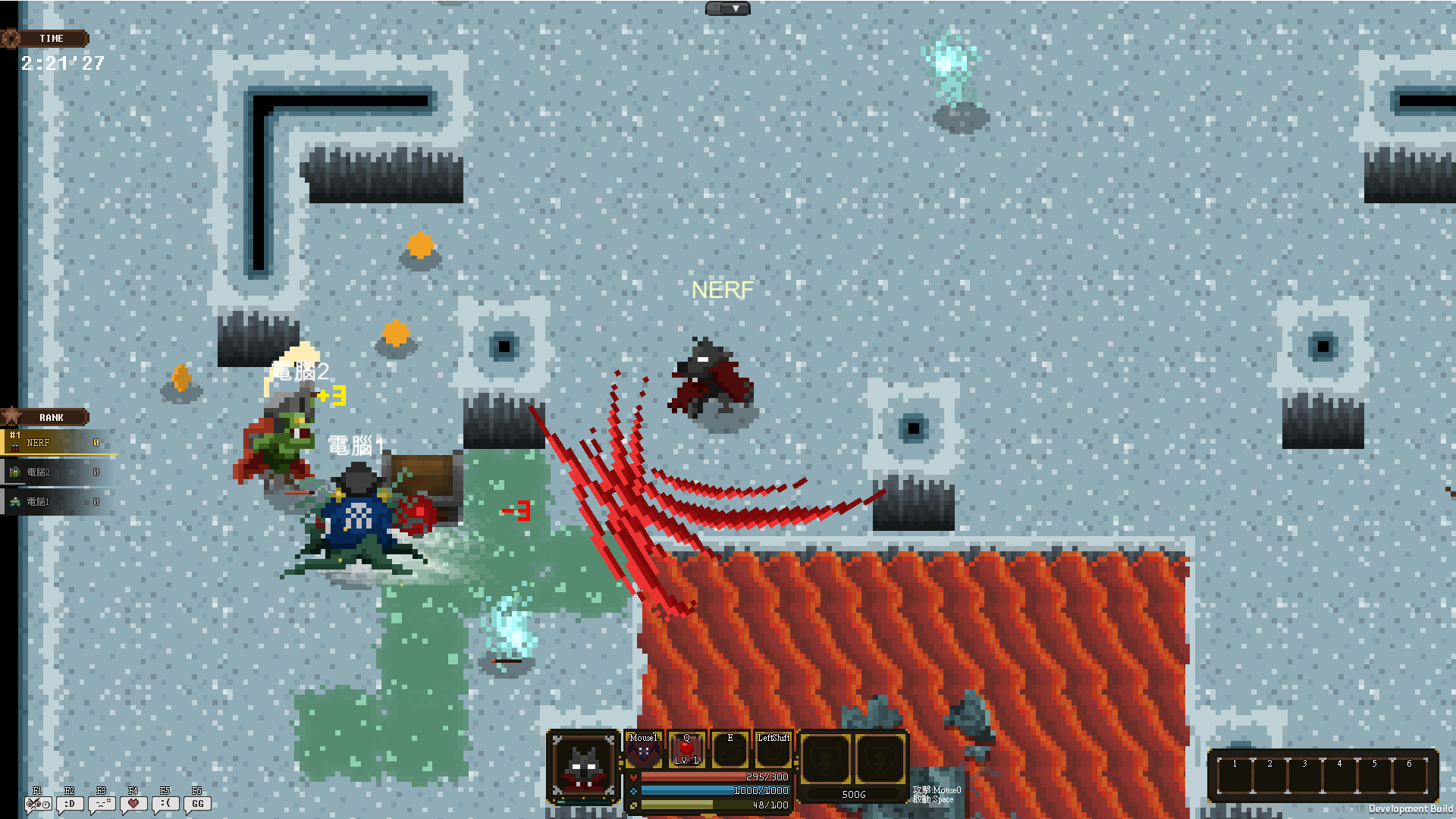 Up to six players, each with their own character chosen from a roster of ten (and customized with the player’s choice of skills) can battle it out in 2D arena fighter Hunger Dungeon.