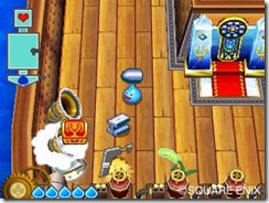 Slime Mori Mori Dragon Quest 3, a pirate-themed sequel to Dragon Quest Heroes: Rocket Slime for the Nintendo 3DS, has a similar gameplay system. You can defeat ships by firing items like rocks and treasure chests from cannons or you can "slime" the heart of the ship.