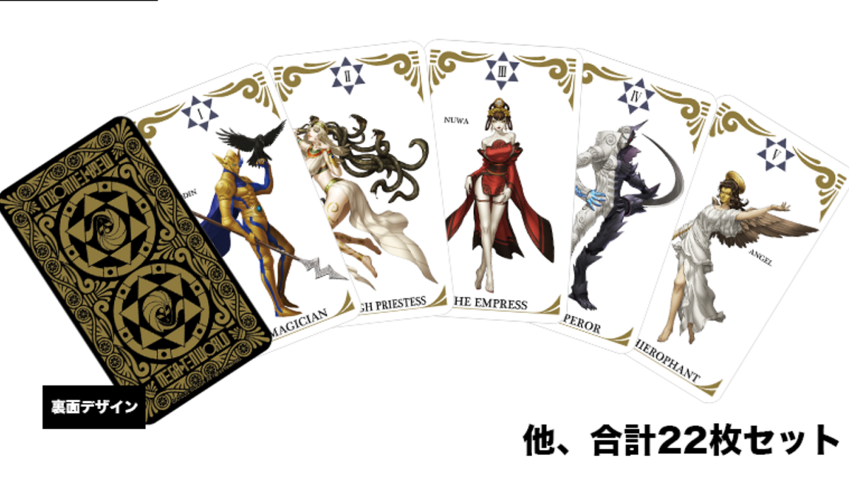 Atlus revealed the merchandise that it will sell for the 30th anniversary of the Shin Megami Tensei (SMT) series, with tarot cards being among the goods. You will be able to purchase them at the commemorative event at KT Zepp Yokohama May 5-6, 2023. They will also be available afterwards. [Thanks, Game Watch!] Some items, such as the ema and artwork by character designer Masayuki Doi, are exclusive to people who purchase the S Seat or VIP Tickets. While Atlus has not yet revealed the prices of these items, we do know the general designs for everything. As a reminder, these items are on a first-come-first-serve basis at the event. So there is no guarantee that you can purchase something if you are too late to the vendor. The SMT 30th anniversary goods are: