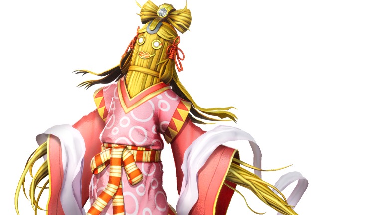 Today, I’d like to introduce Kaya-no-Hime. We’re showing both her retouched 3D model and her concept art, as she was yet another demon we hadn’t intended to illustrate separately. Kaya-no-Hime is a goddess from Japanese mythology, the fabled daughter of Izanagi and Izanami. The word “Kaya” refers to dried straws used in thatch roofs, and she is said to be the ancestral deity of grass or, in some regions pickled vegetables. For this game, we designed her so that the straws would form what resembles a straw doll. The straws that make up her body have been dressed in traditional Japanese garbs and ornaments. Her more human-like aspects were inspired but the “Hime” in her name, which means “princess.” As such, we decided to make her look somewhat naive and a little ditsy, leaning into the “oblivious princess” caricature where we could. A little while back, these sorts of characters were often employed in Japanese period dramas in order to give the stories a bit of a comedic touch, but we don’t really see them too often these days. On a separate note, there are a handful of demons in this game that we designed without having any particular story role in mind. These were basically stray demons whose design preceded their purpose, and because they weren’t necessarily confined to a specific narrative role, we were able to be more experimental and innovative in our approach. In a way, I feel it was these periods of being able to really let loose that gave us the biggest sense of joy and satisfaction during development. Kaya-no-Hime’s design goes back to earlier development stages as well, as she’s actually the result of us customizing and reworking an older idea we nixed for SMT IV: Apocalypse. There are so many more design ideas and demons that we’ve stockpiled for potential use in the future, so if we ever get the chance, we’d love to bring them out in future titles.