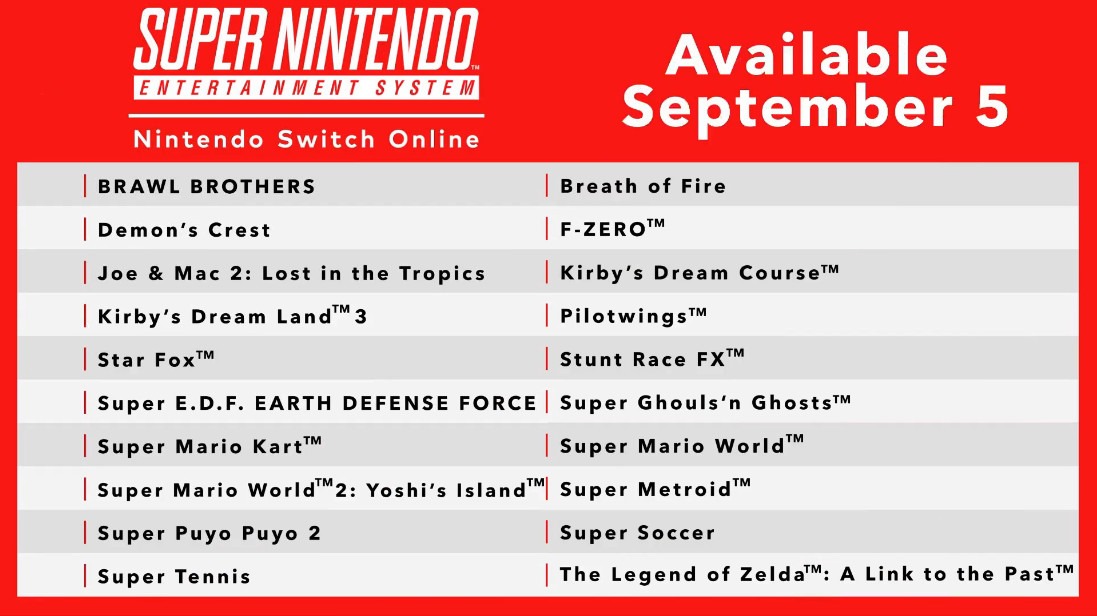 The above 20 titles were revealed to be the debuting SNES titles that release September 5, 2019.