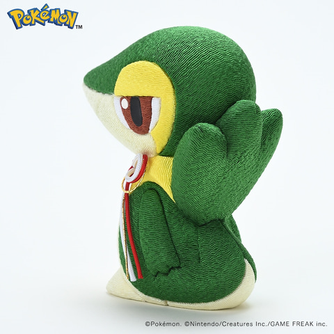 Snivy is the Grass-type starter Pokemon from Generation V, or Black and White. Since Ash in the anime owned a Snivy, it gets a decent amount of screentime, making it a familiar Pokemon even for those who don’t play the game. Snivy eventually evolves into Serperior, which resembles a snake rather than the lizard that Snivy is. Details of its design, such as its half-lidded eyes and the large leaf on its tail, also appear on the kimekomi doll.