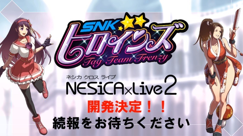During the BURN TWO FIGHT2018 tournament for the arcade version of The King of Fighters XIV, NESiCA revealed that an arcade version for SNK Heroines: Tag Team Frenzy is also in the works. [Thanks, Kakuge-checker!] The game will also be running on the NESiCAxLive 2 platform, same as The King of Fighters XIV. More information will be revealed later. Previously, we reported on an interview with producer Yasuyuki Oda, where he revealed that there may be some surprising characters in the game. SNK Heroines: Tag Team Frenzy releases on PlayStation 4 and Nintendo Switch in Summer 2018, and now also has a confirmed arcade version.