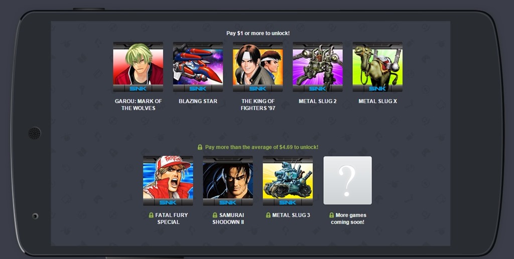 On offer at the time of writing are eight SNK games for Android smartphones and tablets at a pay-what-you-want price, with the minimum being a dollar. They are as follows…