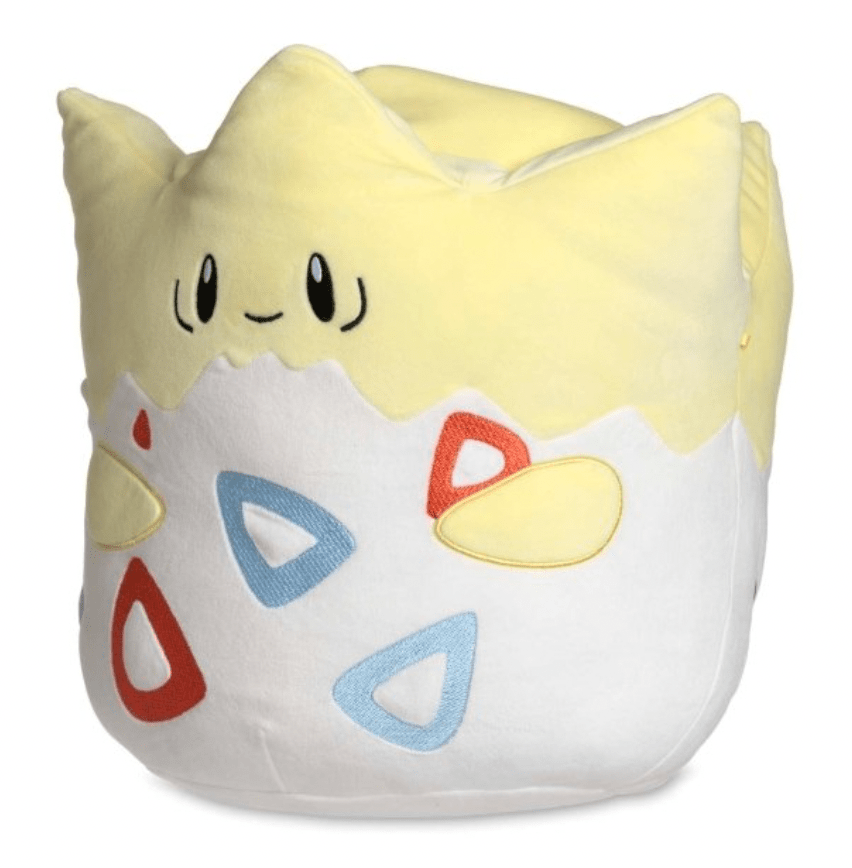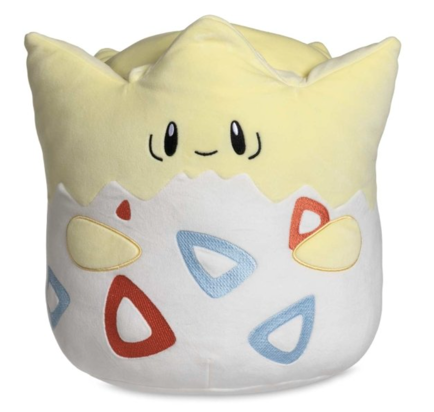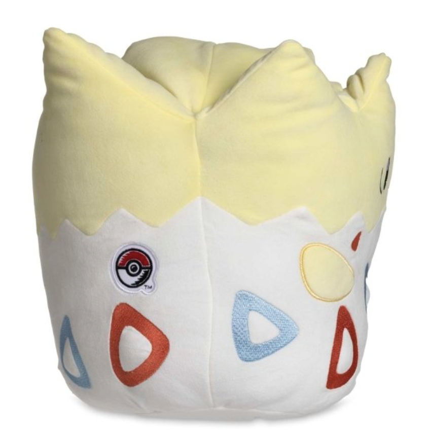 Next, here’s how the Togepi Pokemon Squishmallow looks. Its Poke Ball patch is a bit higher up on its body, but remains on the right side of its back.