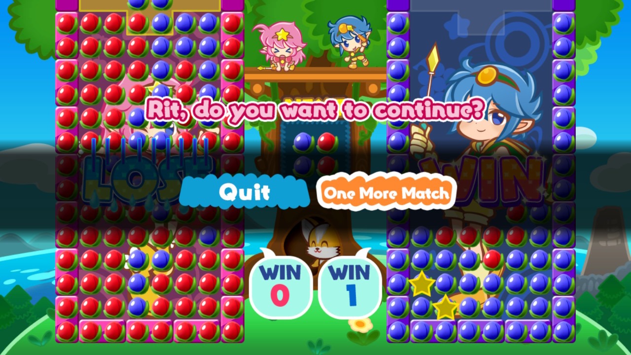 That online multiplayer is there does count for something, I suppose. It is not present in the Japanese version. It is just a shame that Soldam: Drop, Connect, Erase’s VS. Showdown is so bare-bones. When you start it up, you have no control over who you face. While you are playing, the lag can impede play and mess with your strategies. After a match ends, you have to wait for the loser to decide whether it all ends. All of these feel like things that could perhaps be improved with eventual patches, but it is a shame things are so rudimentary at launch.