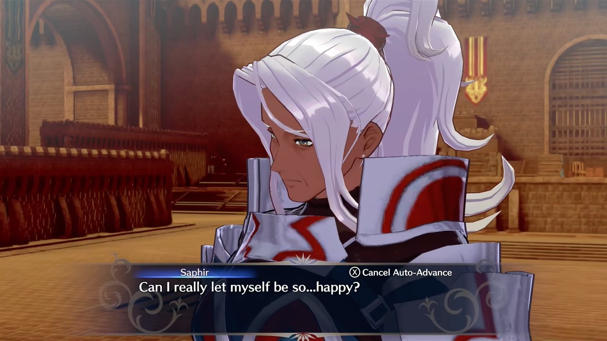 Saphir With Saphir, I loved how sensitive she came across in this romance. She’s always such a strong woman throughout the game. Even throughout the conversations with Alear, she’s this stalwart staple. But once the idea of them being partners forever comes up, we see that other side. It’s especially great to hear Alear say they want to be strong enough to protect her. Not to mention her going, “Can I really let myself be so happy?”