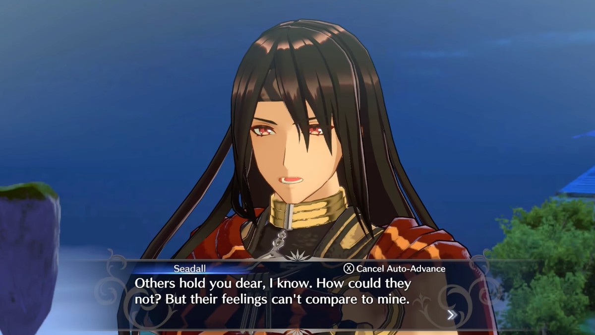 Seadall I worry about Seadall! Dude, you’re wandering in the desert and nearly get yourself killed. You’re holding yourself to possibly impossible standards to be the best dancer possible. When we get to the B-rank conversation, we see that perfect facade can drop. Also, that he’s so obsessed with perfection that he might deny himself occasional treats or rely on “cards” to get answers. We also see he’s willing to be a bit more tempered as a result of the bond. Also, Seadall continues the trend of basically proposing to Alear before they do, which really helps this feel like a real relationship.