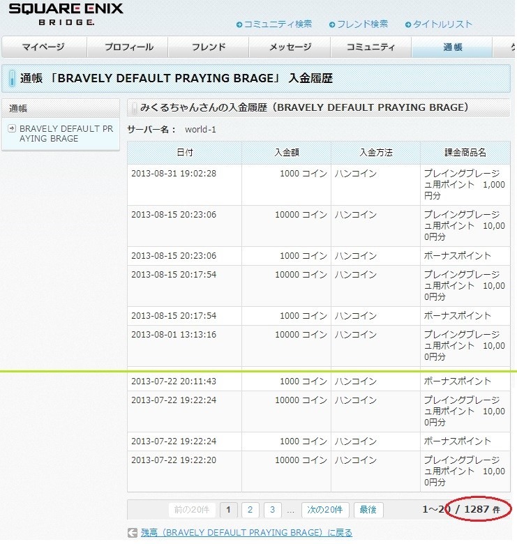 The above is a glimpse at a page from her 1,287 transactions of coin purchases for the game, used to buy extra game time and more. Mikuru even posted a monthly report on how much she spent: