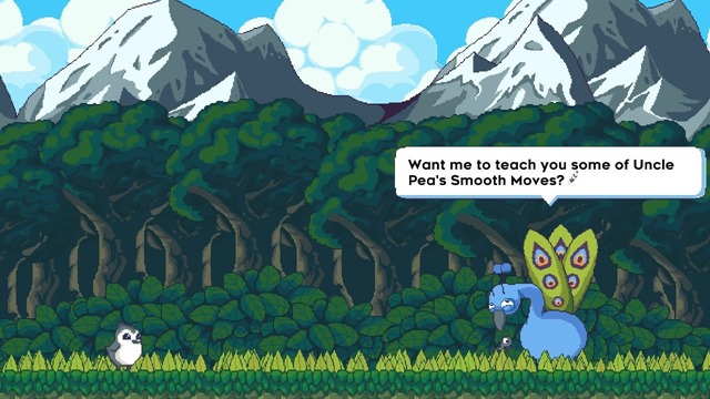 In Songbird Symphony, players follow a young chick named Birb. He’s suffering from an identity crisis after realizing he isn’t a peacock like the bird that’s been raising him, Uncle Pea. After meeting with the wise owl, he sets out on a journey to learn notes from other birds’ songs and discover who he might really be. Birb visits new areas, brings music to them, and “sings” along with other birds’ songs. (You can learn more about it from our playtest.)