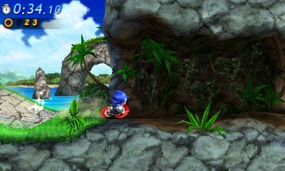 Like its console counterparts, Sonic Generations on 3DS lets you play as Classic and Modern Sonic. The game is broken up into seven stages, each one consisting of two acts. Act 1 is always Classic Sonic, while Act 2 is Modern Sonic. After completing both acts, you unlock a forward-running bonus act. There’s a clear difference between the feel of Classic and Modern Sonic. Classic Sonic can perform the old Spin Dash (hold down and press jump) while Modern Sonic can perform a highspeed boost dash (Y button). Initially, Modern Sonic is also the only one of the two with a homing attack. Once you’re close enough to an enemy, a red reticule will appear over them. You can jump once to get in the air, and then press the jump button a second time to perform a homing attack. Once you complete the Genesis stages (Green Hill, Casino Night and Mushroom Hill), Classic Sonic acquires the homing attack as well, making him a lot more useful than he is at first. That having been said, I largely preferred the Modern Sonic stages throughout my time with Sonic Generations, and this is because of his boost dash.