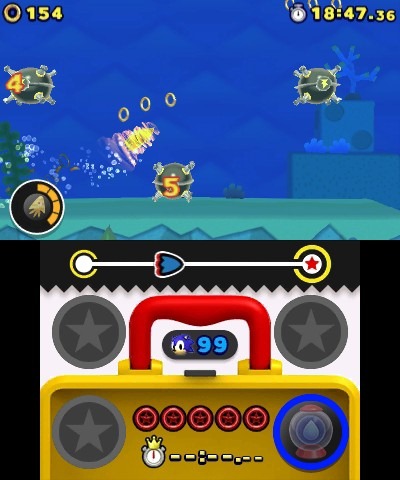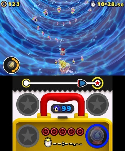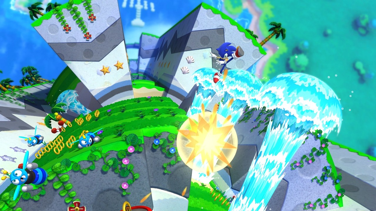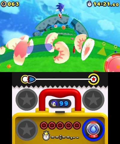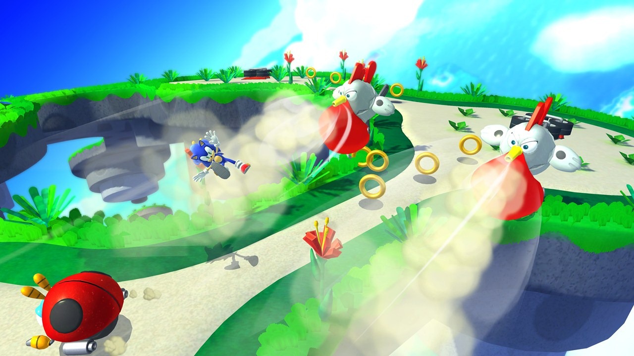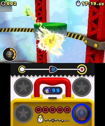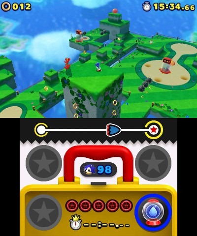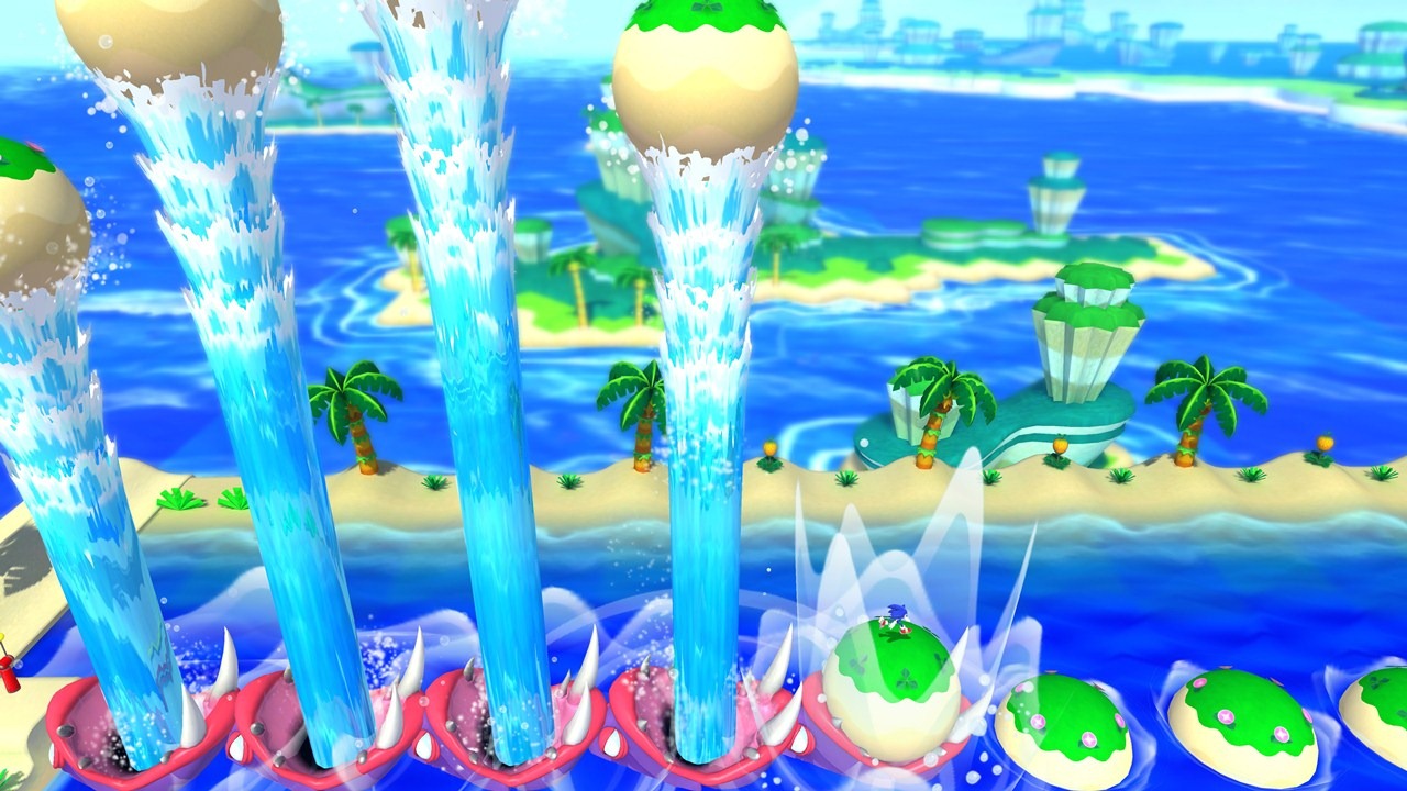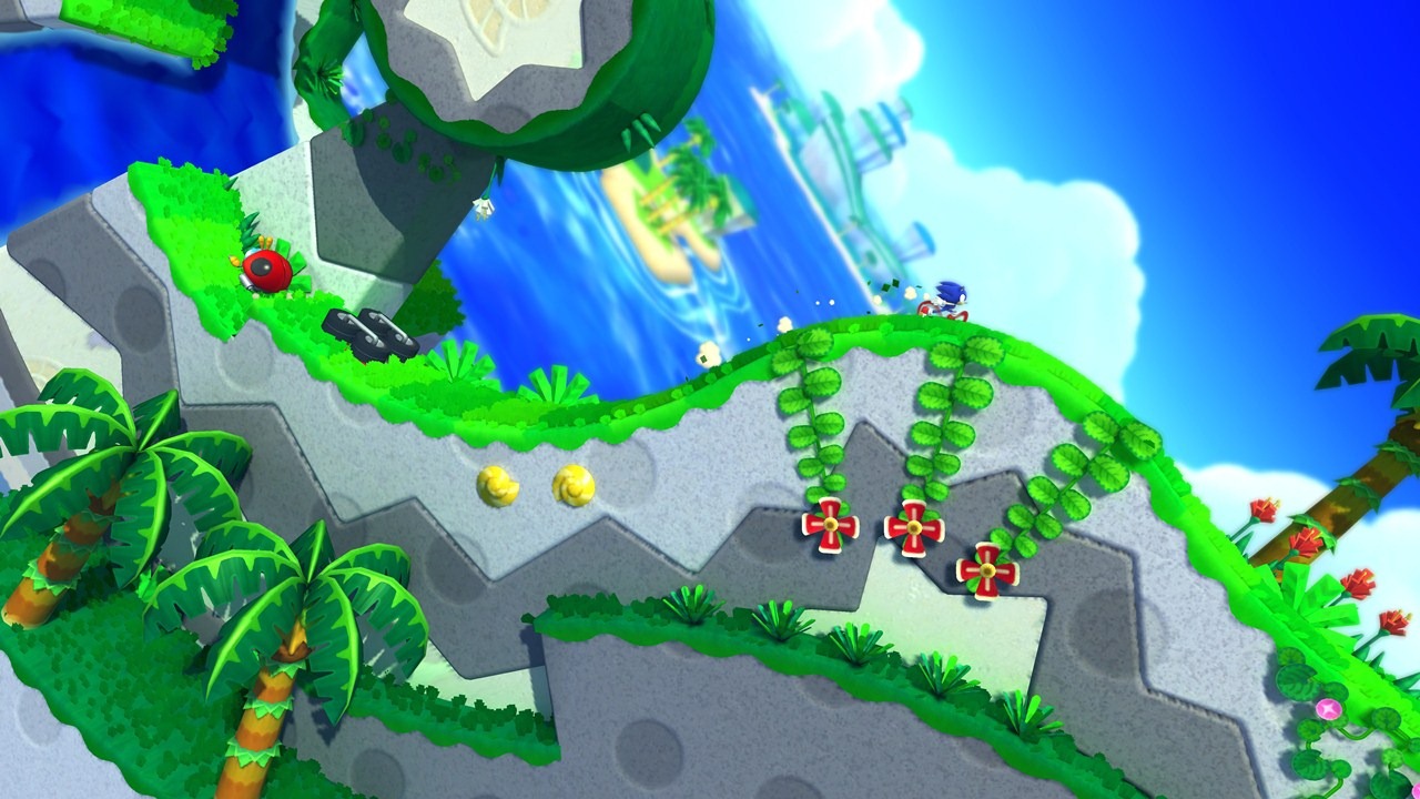 We know that the Wii U and 3DS versions of Sonic Lost World are different, such as in terms of RC Gadgets, but it’s also nice to see some comparison shots of maps within the game itself. The screens below are taken from the Tropical Coast Zones 1 to 4 and show, most obviously, the sense of scale that the Wii U has over the 3DS. The above screenshots have one from the Wii U (Above) and one from the 3DS (Below it) and it’s pretty impressive that the 3DS can pack in the kind of long draw distances that the Wii U will be rendering, too. However, closer examination of other shots shows us that the tone of each game also feels slightly different. Where the 3DS ones seem to suggest a slightly slower form of platforming, the Wii U’s larger, more expansive spaces lend themselves to racing around and trying to avoid sudden appearances by robotic enemies. There’s also the clear message that both these games will have areas only reachable/explorable on their own platforms.