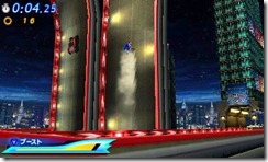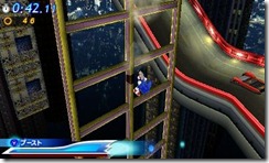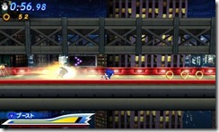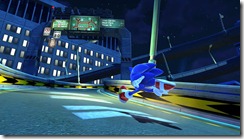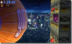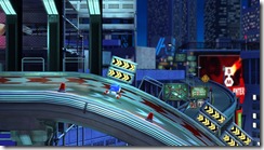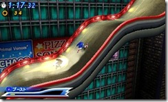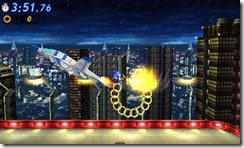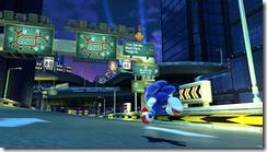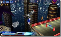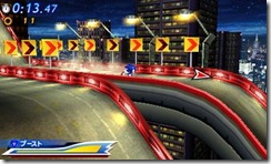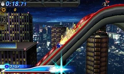 The 3DS release also has a cityscape, but this stage is from Sonic Adventure 2. Players will race Shadow on Radical Highway.