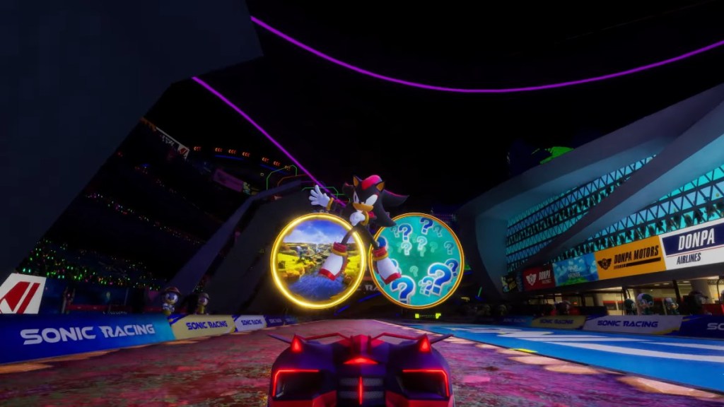 Characters will not be tied to a single vehicle but can choose from various customization options, including vehicle parts, colors, decals, textures, mods, and even the interior. Rouge, Charmy, Espio, Storm, and Wave appear briefly appear on billboards, though it’s unclear whether they will be playable.