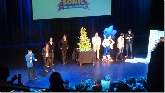 Sonic the Hedgehog’s birthday bash was across the street from E3 at a special Sega event called Sonic Boom. Sonic Generations director Takashi Iizuka announced at Club Nokia what we told you weeks ago, there will be a Sonic Generations demo. Later Jun Senoue, composer for may Sonic the Hedgehog games, took the stage and rocked out to Green Hill Zone with his band Crush 40.