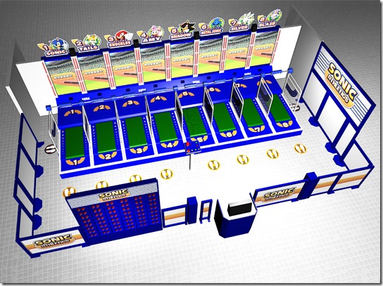 Move over Mario & Sonic at the Olympics! Sonic Athletics is the closest thing to running a 100 meter race as a blue hedgehog. Debuting at the Sega mini-amusement park Joypolis, Sonic Athletics puts eight players on treadmills to run in three events – 100 meter dash, long jump, and a 110 meter hurdles. There’s a button on the machine you can press to make Sonic or whoever you play as jump.