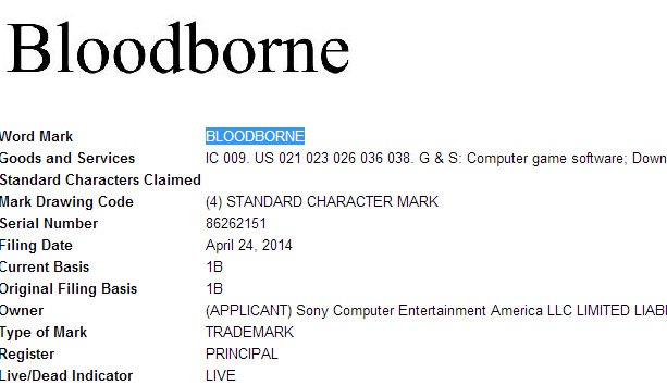 Sony Computer Entertainment America have filed a trademark for something called “Bloodborne”. At present, no further details as to just what Bloodborne is are available, but perhaps we’ll hear about the game at E3 this year?