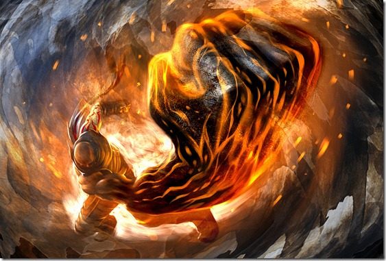 Sony also showed off a couple more spells that you can use in Soul Sacrifice. As you’re aware, instead of sacrificing your body parts for powerful magic, you can sacrifice items to create weapons instead, like the Plant Sword and Raijin Statue Axe. The list of magic that you can conjure grows with the Giant’s Bones and the Stone Wall Ruins. True to its name, by sacrificing the Giant’s Bones, you can harden your fists and grow them to massive size: