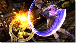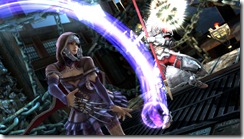 I’m not sure I got a good feel with Z.W.E.I. This new character has a sword with a cross-like handle, but he holds it like a tonfa. Z.W.E.I. also has a werewolf buddy that can pop out if you extend an a combo the werewolf, E.I.N., will deal the finishing blow. E.I.N.’s uppercut is useful as a linker since it lifts an enemy in the air. E.I.N.’s other moves sends players flying backwards out of combo continuing range. "Werewolf Confess," Z.W.E.I.’s Critical Edge calls E.I.N. out who grabs an enemy and slams them to the ground with a pile driver.