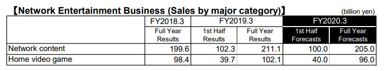 The above shares a look at the Network Entertainment Business sales, showing its overall increase from the FY2018 but it shows slightly lowered expectations for this current fiscal year ending March 2020.