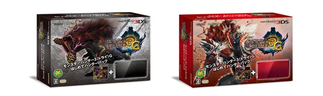 March will also see the release of four Nintendo 3DS bundles: two with Monster Hunter Tri G and two with Super Mario 3D Land. Let’s take a look at both those. First up, the Monster Hunter Tri G bundles, each for 19,800 yen, and scheduled for March 17th. They include the game, a 3DS, and a special cleaning cloth: