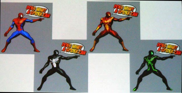Spider-Man was the lucky candidate. Above, you have the classic red and blue costume, the black alien symbiote costume, the Iron Spider armour designed by Iron Man from Civil War, and the green one is from Marvel’s upcoming “Big Time” arc of Spider-Man comics.