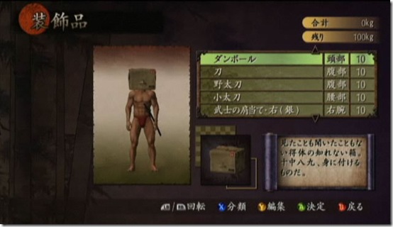 What kind of content? Looks like it might be character customization content. Way of the Samurai 3 has a character creation system where you can transform your samurai into a Spartan warrior or don a suit of cardboard boxes. Currently, no US publisher has announced Way of the Samurai 3, but since an Xbox 360 version is in the pipeline we should get it.