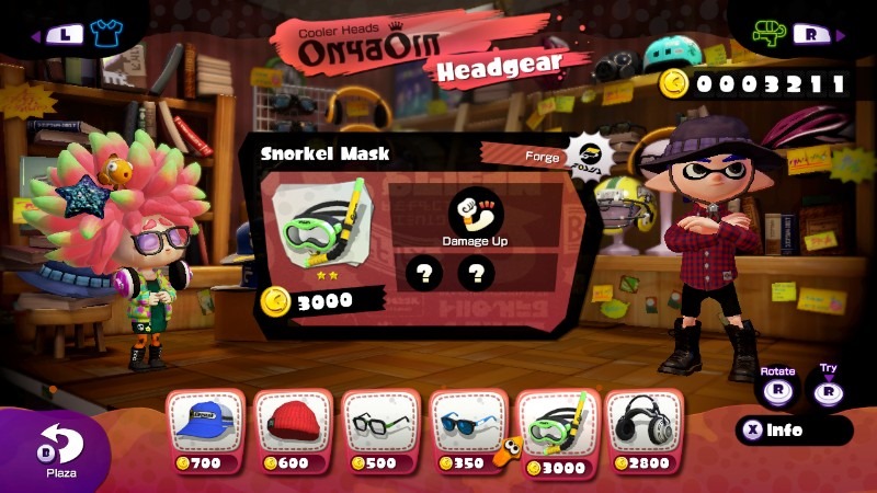 Nintendo’s plan to keep the game alive seems to be to distribute new maps, modes, and weapons every few weeks once the game launches. It’s an interesting strategy that I didn’t quite expect from Nintendo. At launch, you’ll have access to one mode and five maps, which definitely doesn’t seem like a lot. Based on my experience, I played up to level 11 (which roughly translates to…a whole ton of matches) and wasn’t bored of the game by a long shot, but your mileage may vary. The game seems to be structured in a way so that you can’t see everything at once. Only two maps are in rotation at a time per mode (the version of Splatoon I played also had the Ranked Battle mode unlocked for everyone at level 10, in the real game it will unlock once a certain amount of people reach that level) which means that for at least a while, you can only play on 4 maps at any given time. Nintendo’s reasoning seems to be for players to strategize what weapons they want to pick for that set beforehand, but I don’t really see it. I think it would make more sense to allow players to change loadouts between spawns or before the match begins, but neither of those options is present. It seems like the primary way things will be kept interesting are through your own growth and experimentation. From my many hours of Splatoon, my strategies have changed dramatically from when I first started, and I’ve gone through tons of different weapons and clothing effects. As you play, you gain levels and money that allow you to purchase new items, which change how you play and what you can do. With three main weapon types and dozens of variations of skills there’s a ton to play with in Splatoon, and the fact that there’s even more to come is pretty exciting. I think the most interesting thing about Splatoon is how experimental it all feels. Not just in how different its gameplay is, but in the way Nintendo is structuring its release content. Splatoon definitely won’t jive well with everyone, but personally I’m invested enough in the gameplay based on the launch content alone, and I’m immensely curious to see what the game looks like by the end of its life cycle. Food for Thought: 1. Splatoon defaults with motion controls on, which makes it so that your aim is controlled by how you hold the gamepad. You can turn it off in the pause menu. I highly recommend disabling it as soon as possible. 2. I like that everyone talks like weird 90s hipsters. In any other game it might be obnoxious, but because everyone looks like goofy cartoon sea creatures I think it works. 3. Splatoon is one of the few games I’ve seen where you can’t actually play on the GamePad for most of its modes. I imagine this is because, for once, the GamePad is actually vital. Looking at the map on it quickly tells you where you need ink up, and also allows you to super jump to the positions of your teammates.