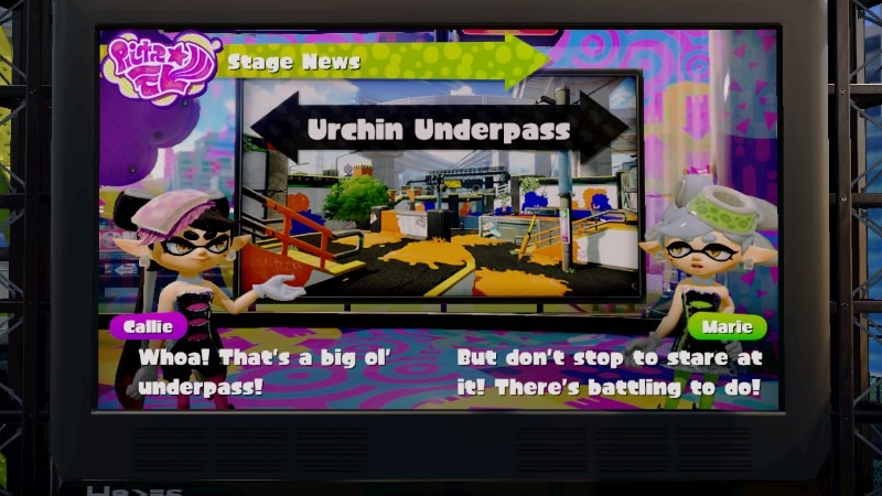 I haven’t been into a competitive shooting game since I was into Xbox 360 a million years ago, but Splatoon, Nintendo’s latest effort on the Wii U, might be pulling me back in. In my mind, there are two big things that make Splatoon great: shooting and moving. Now you may be thinking, hey, those are like the base requirement to be a coherent shooter. What makes Splatoon so great is that while it adheres to these basic concepts, it executes them both in interesting ways. Splatoon is a shooter, but it’s not about shooting other people. At least, most of the time it isn’t. Instead, it’s all about covering everything around you in ink, kind of like a reverse Super Mario Sunshine. While spraying water and ink are polar opposites in terms of cleanliness, I think they both work because they appeal to the part of our brains that are compelled to finish things. Marking up an area in Splatoon is almost like finishing up a coloring book, except you don’t have to worry about coloring inside the lines. The focus on covering the environment fundamentally changes the strategies you employ compared to other shooters. In order to maximize your ink splatting efficiency, it’s simply not viable to camp out in the same spot and shoot guys as you see them. You’re encouraged to keep moving and go into enemy territory, which will no doubt be marked up with the opposing side’s ink. In order to get you around the map quick enough to mark everything up, you’ll need to master your movement options. Holding the stick forward makes your Inkling move forward at a fairly nice, brisk pace. But nice, brisk paces are for losers. To be a winner, you want to be face down in the ink whenever possible, zooming across the screen and sneaking up behind your enemies like some kind of squid Jaws. You can only travel inside the ink of your own team’s color, and you can only shoot your weapons above surface, so you constantly have to balance your actions between moving fast and coming up for air to mark up your surroundings. Alternating these options makes the simple act of moving forward consistently engaging. Additionally, ink surfing isn’t limited to just the ground. As long as they’re inked up, you can go up, down, and all around walls and ramps. It’s a really neat way to get around the map, and especially good for getting the jump on foes. A possible con might be that walls don’t count towards territory captured for your side, but that also means that people will be less likely to remove your ink on the walls once placed. After learning they didn’t have an effect on your score I ignored walls for a while, only to realize I was passing up a really great strategic tool.