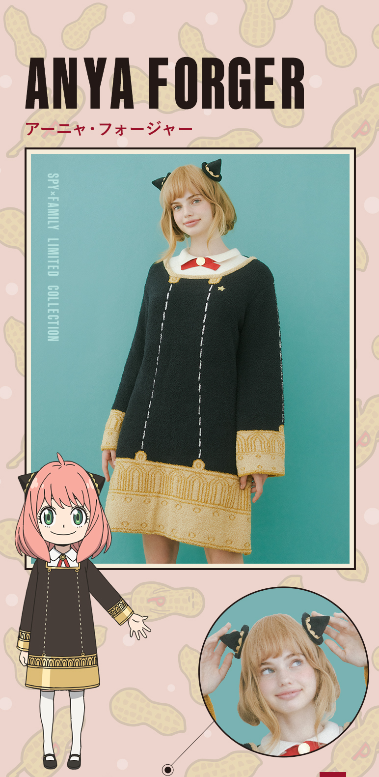 The series Spy x Family will be part of a Japanese clothing brand Peach John limited edition collection. The collection consists of both safe and not safe for work clothing based on a few of the main characters from the series, including Anya Forger, Yor Forger, and even Bond, the family dog. Some of the outfits, like the dresses, could be used as Spy x Family costumes. The collection will become available on October 6 at select Peach John stores in Japan as well as the official online store. International shipping is provided by WorldShopping. [Thanks, Oricon News!] The full lineup for the Spy x Family Peach John limited collection consists of one set of lingerie, two loungewear sets that act as costumes, and one pouch. One piece mirrors the dress worn by Yor Forger while she is performing her job as an assassin in the series. The first set of loungewear is based on Anya’s school uniform, and the other is a fluffy, warm parka with ears and a hood in the shape of Bond’s face. The pouch is a reproduction of Mr. Chimera, Anya’s beloved stuffed toy. You can view the collection in the gallery below: