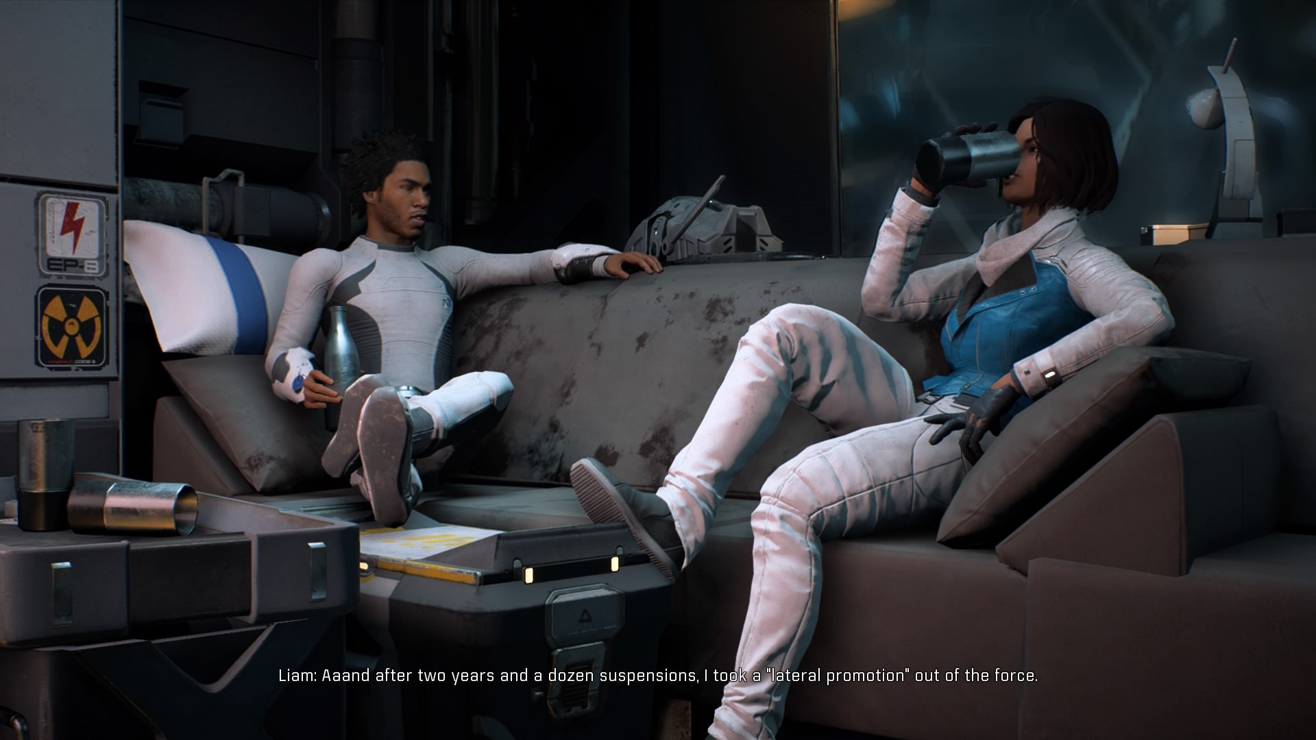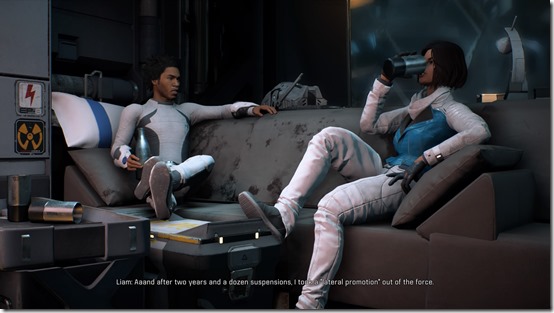 Cora and Liam are the first folks Ryder will have by his or her side in Mass Effect: Andromeda. They’re the Ashley and Kaidan of the game. Neither are particularly exciting. Not that they’re bad characters. Cora is a strong, stubborn woman with uncompromising principals. Her time spent training and working with Asari Huntresses has left her with an appreciation for that culture, though she also has a fondness for gardening and roses. Liam is a young man who was a cop and first responder, then came to Andromeda in search of adventure. He’s rather cordial and interested in bringing people together, as evidenced by his going to the trouble of getting an actual couch for the Tempest and organizing a movie night. (One where the movies don’t even have to be good, no less!) They’re decent enough folks, but not particularly exciting. Though, the people with male Ryders romancing Cora and female Ryders romancing Liam might argue otherwise.