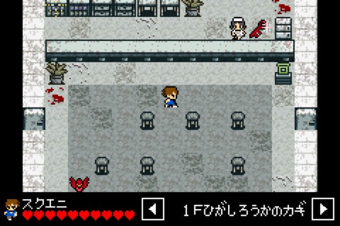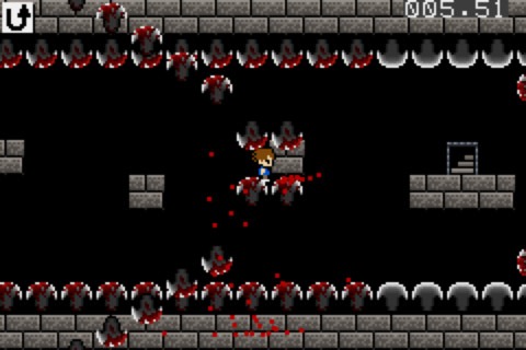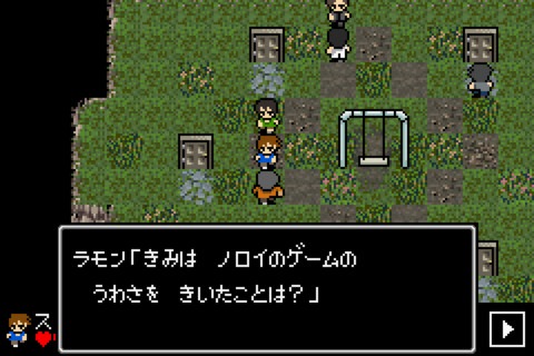 In the game world you’ll play a 2D RPG and jump through punishing platforming levels where everything kills you. (Your character loses his head if he touches a flying blade in the DS version.) Nanashi no App also has a built in Twitter feature, which lets players read and tweet within the game.