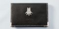 pouch both are intended to make people think of Grimoire Weiss. The card case has the book’s look embossed into the PU leather, while the pouch has a zinc charm that looks like him on the front. Both the case and pouch have Angelic script on them or inside. However, the pouch has the added detail of a magic circle on its back.