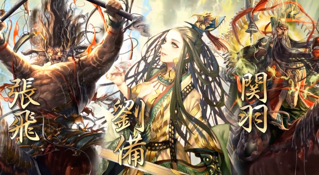 … and then things get strange. The second set of characters are Zhang Fei, Liu Bei, and Guan Yu. However, Liu Bei is a woman in Sangokushi Rumble. OK…