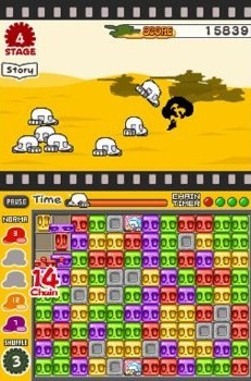 Each puzzle begins with a clear mission or quota, and you have achieve that goal. If you have to clear X amount of blocks, the little colored tanks on the left side of the bottom will have the number of blocks on them that you still have to eliminate. If you have a mission to complete, the top screen will say your goal (for example, eliminate clusters of seven or more blocks 25 times) and keep track of how close you are to completing it.