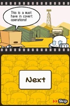My favorite area had to be the Collection section. Think of it an Omake extras page. You can view the skits from the Story mode here – which I recommend because they’re really quite cute and clever – with the Story Viewer. You can also customize a tank with the costumes you’ve collected in Quest Mode, then torment and tap your dressed up Squishy Tank to make him complain and (maybe) explode. Finally, there is a Mini-Game Center which contains all the Squishy Tank mini-games you’ve unlocked from Story Mode. These are all short shooting games called "Squishy Combat", "Squishy Combat 2" and "Squishy Combat 3". The first has you trying to shoot the tanks, who are hiding behind objects and trying to run away. The second has you shooting tanks that are diving in. The final game is cutest, and an odd take on Space Invaders. Instead of trying to attack advancing tanks, you’re trying to destroy them all before they back up and escape.