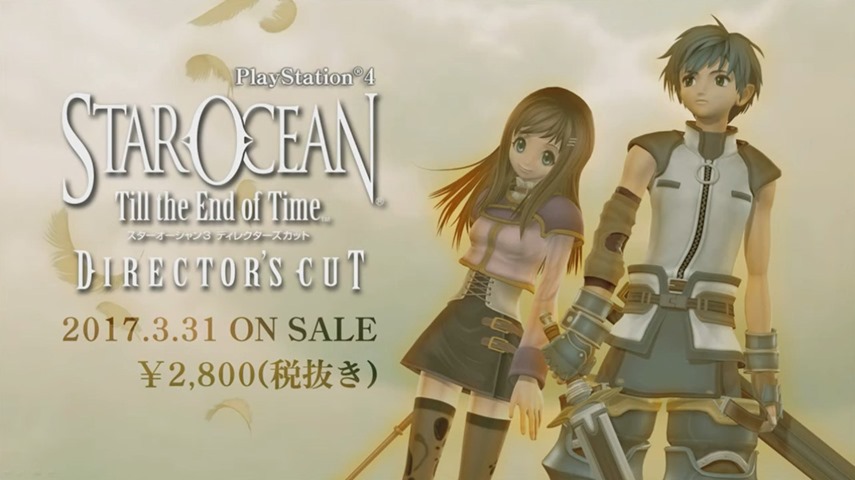 Square Enix recently announced Star Ocean: Till the End of Time is getting an emulated HD release as a “Director’s Cut” version in Japan for PS4, and today they announced it’ll release on March 31, 2017. As previously detailed, the game is an up-rendered HD version on PS4, meaning that it runs using the PlayStation 4’s PS2 emulator, with optimized appearances to reduce jaggy edge, improvement on its lighting, and overall better visuals. The game will also feature trophy support, share function, remote play, and improved load times from the original PlayStation 2 version. Star Ocean: Till the End of Time Director’s Cut releases in Japan on March 31, 2017 for 2,800 yen plus tax.