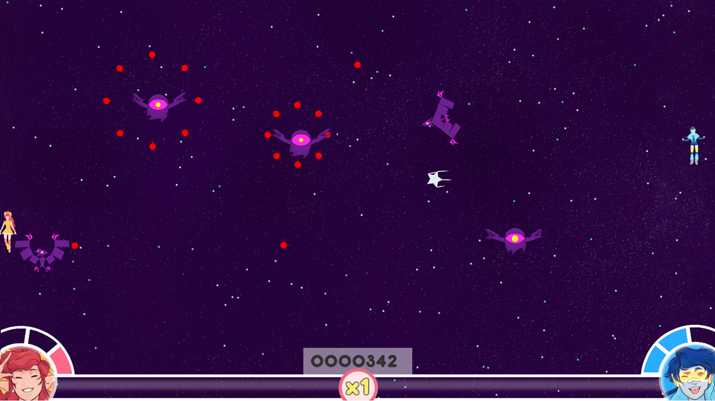 StarCrossed is a co-op shmup inspired by magical girls, having players bounce a power star between one another in order to beat back the strange foes that have are attacking from space.
