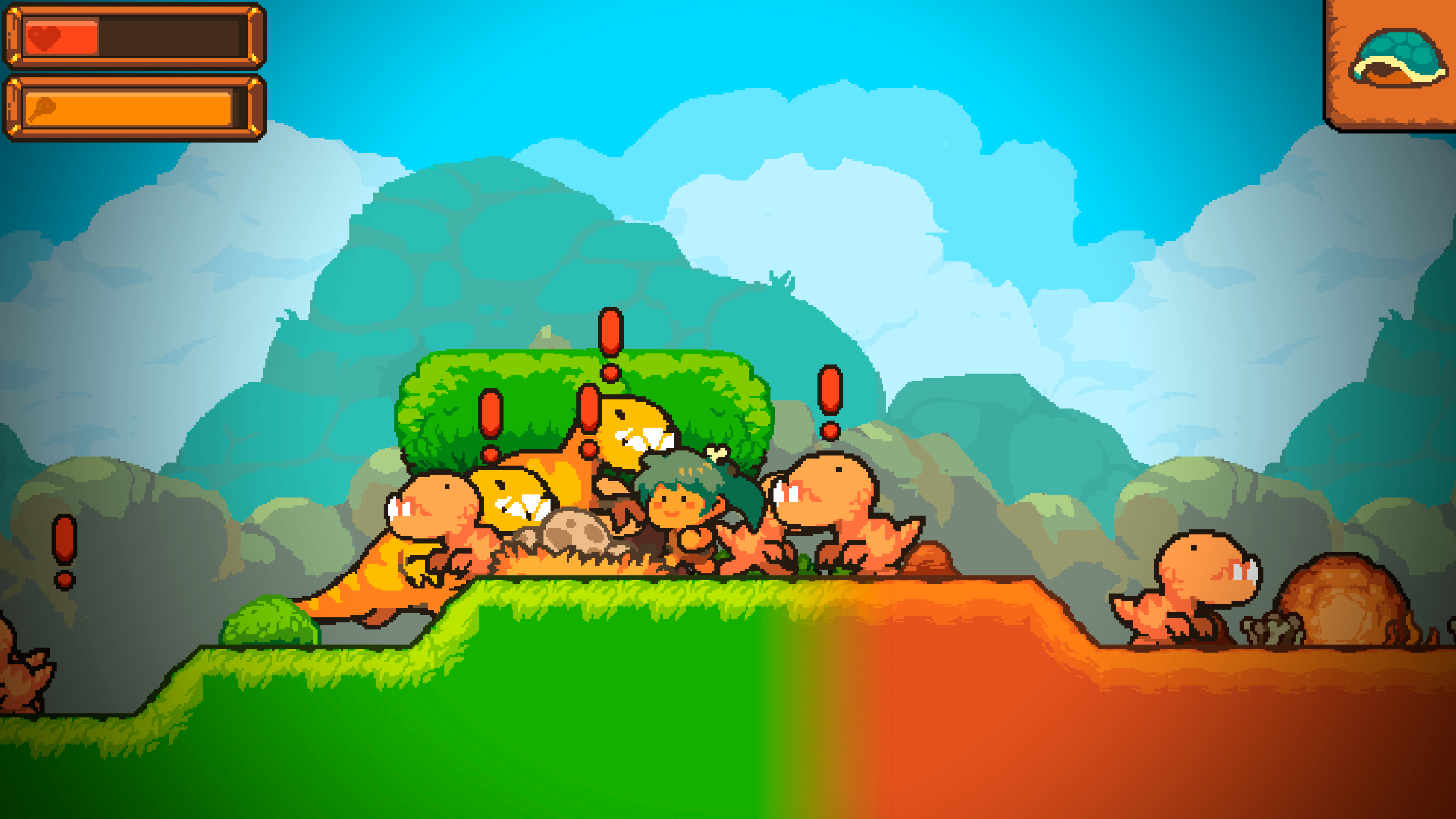 StoneBack offers endless 2D fields to explore, which also means an endless supply of dinosaurs looking to make the player into a meal. Not all of them are dangerous, though, as some will ignore the player or only attack should they get too close to their nests. It’s up to the player to figure them out and decide what to do with them.