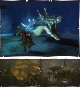 Capcom will release downloadable quests for Monster Hunter Tri G and convenience store conglomerate 7-Eleven is getting one of them first. Between January 17 and January 31, you can get an underwater quest along with your morning (cold black) coffee by connecting your 3DS to their 7spot service. You’ll fight Royal Ludroth, Lagiacrus, and Gobul one after another in this five star quest. Clearing the quest unlocks materials, which can be used to create equipment exclusive to the quest. Capcom didn’t spell out *what* the equipment is, but shared an image of characters in modern day clothes.